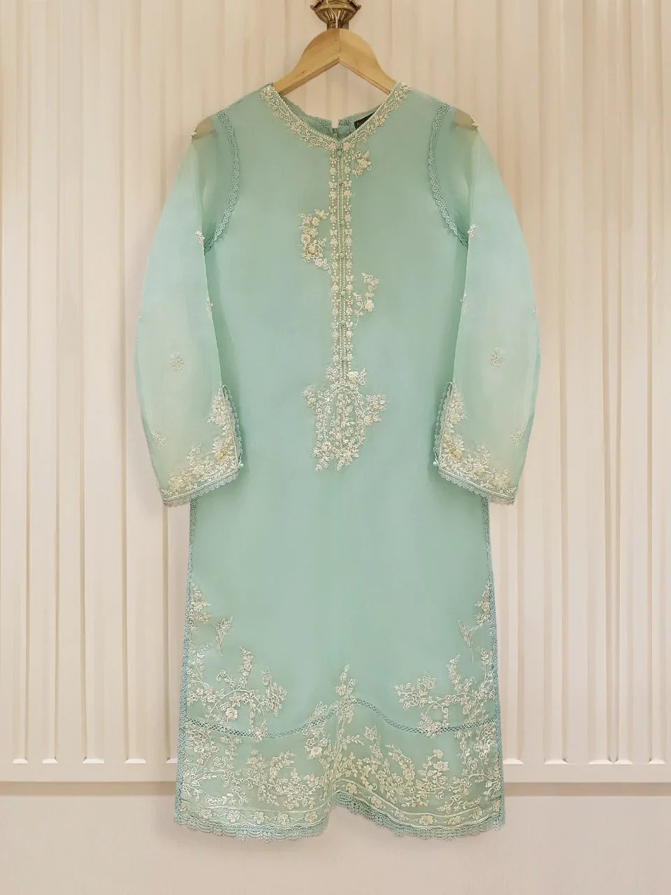 Elevate your elegance with the Agha Noor Two-Piece Pure Organza Suit S105261 — a luxurious, ready-to-wear masterpiece crafted from premium pure organza fabric. This stitched shirt boasts intricate embroidery that adds timeless sophistication and grace, perfectly complemented by a flowing silk dupatta for a touch of refined shimmer. With a flattering 47-inch length, it offers effortless style and comfort for weddings, parties, or special occasions. Exude sophistication with this authentic Agha Noor creation.