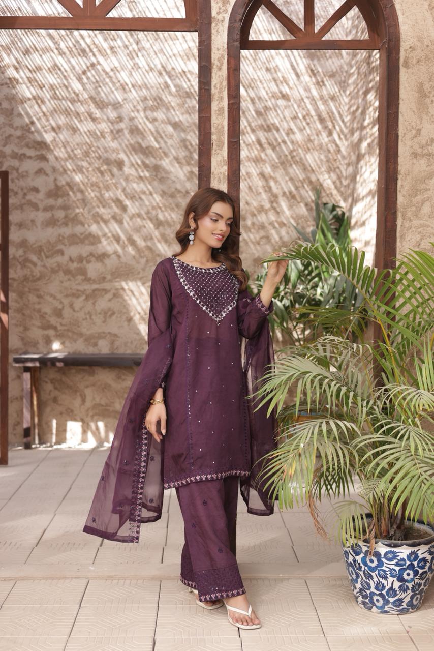 - Pieces: luxury embroidered shirt + organza dupatta + coordinated FLAPPER